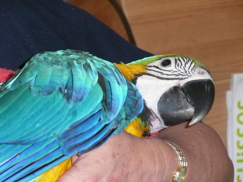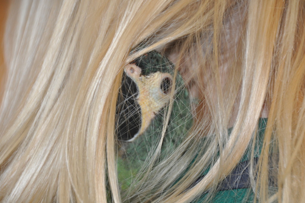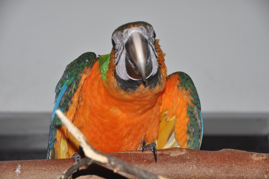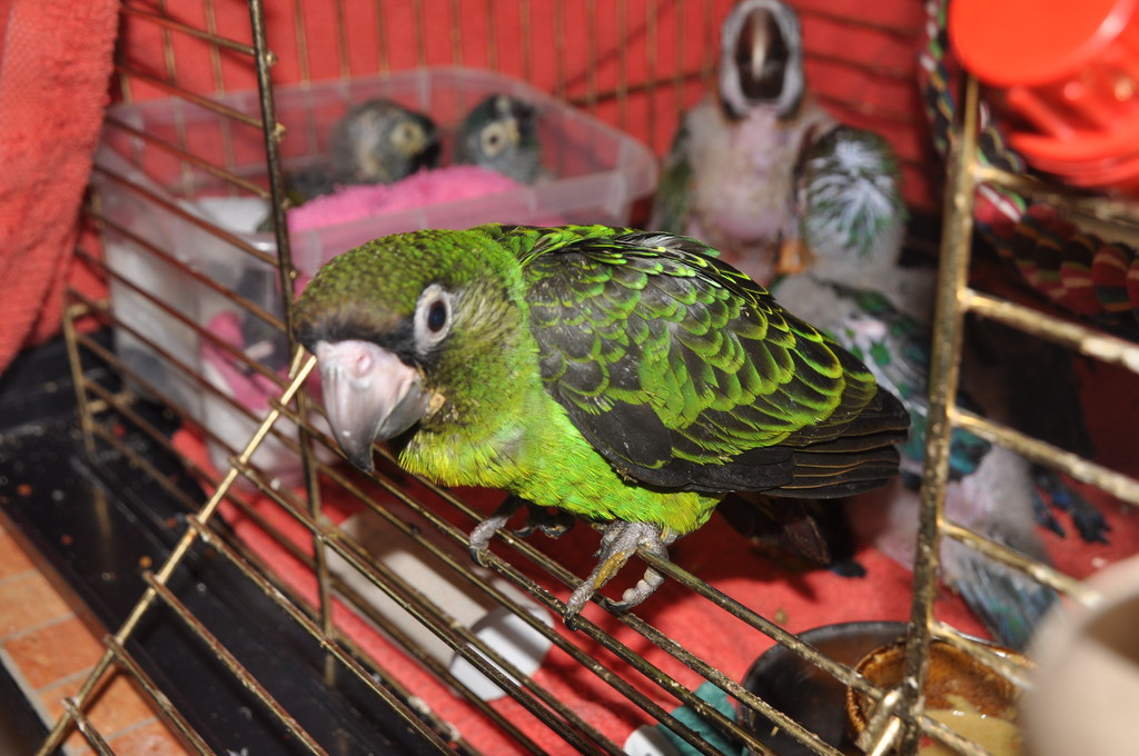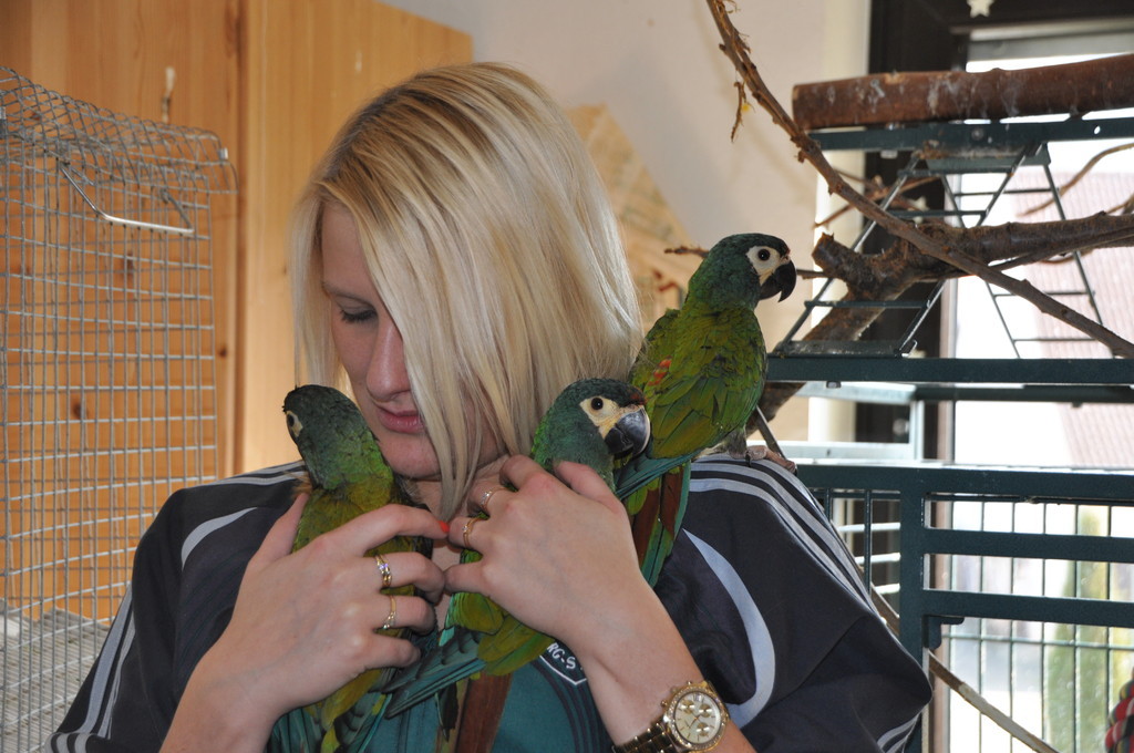 Grüner Kongo -0,1 - trainiert - kommt auf Zuruf auf die Hand geflogen